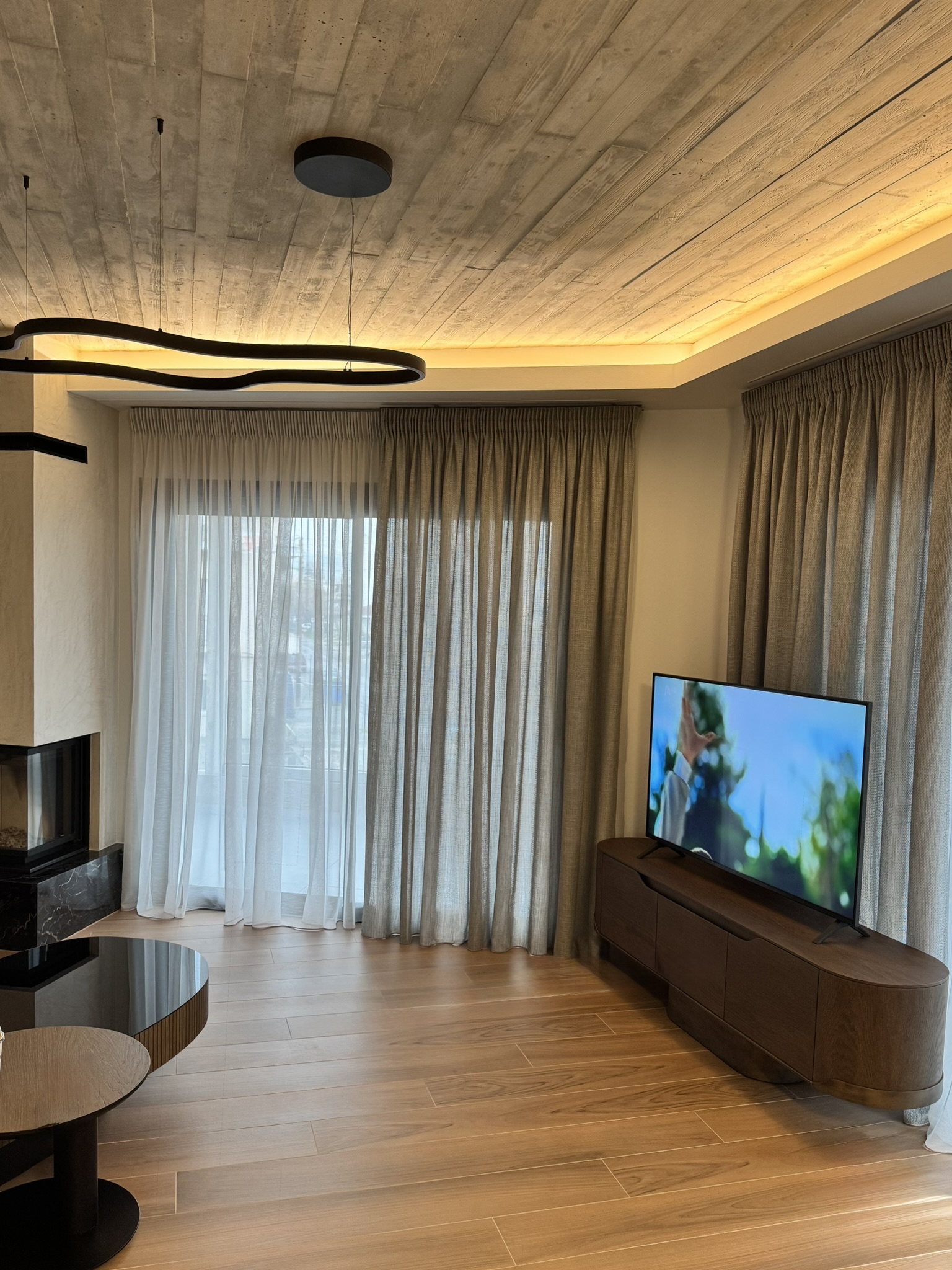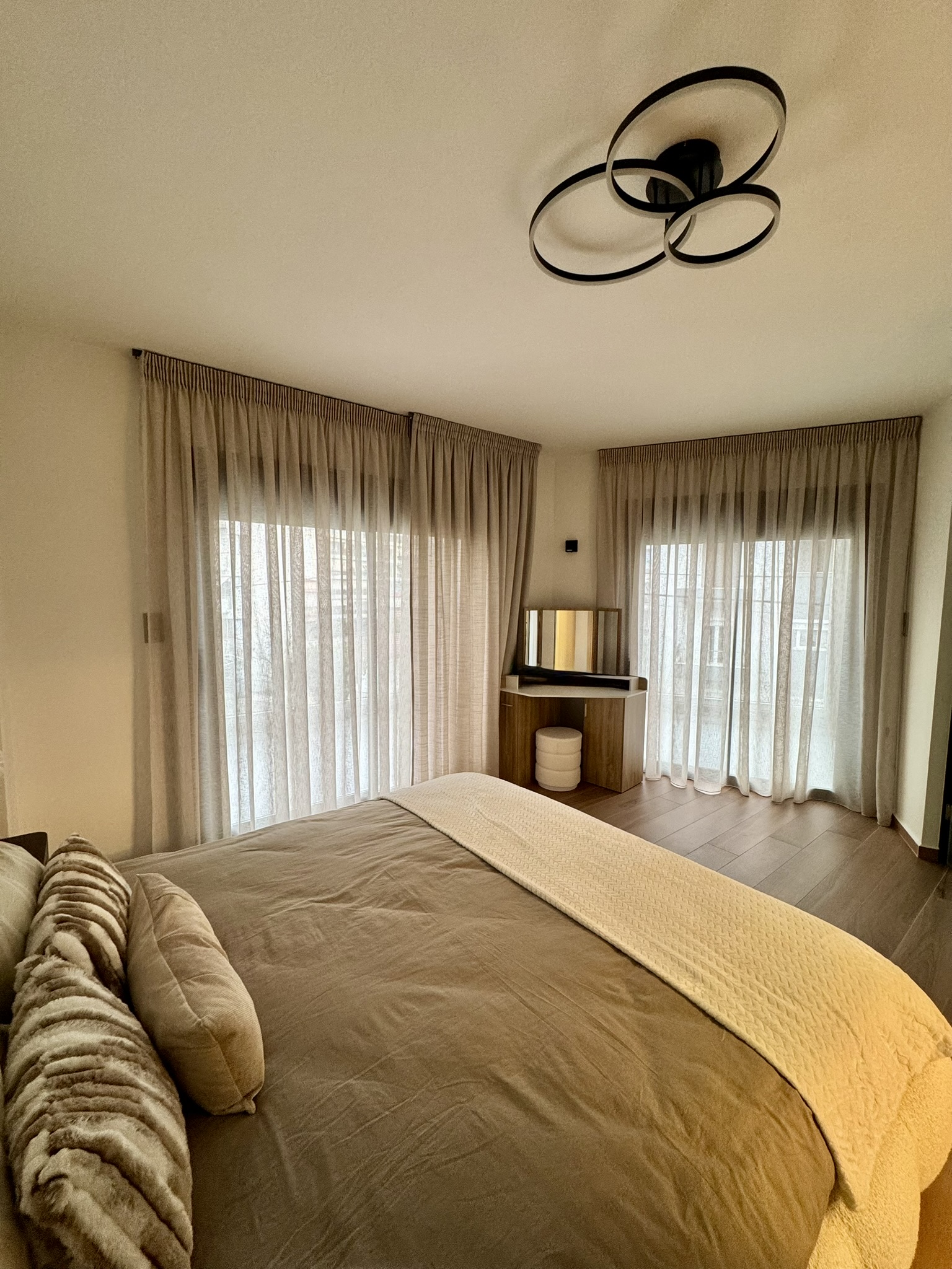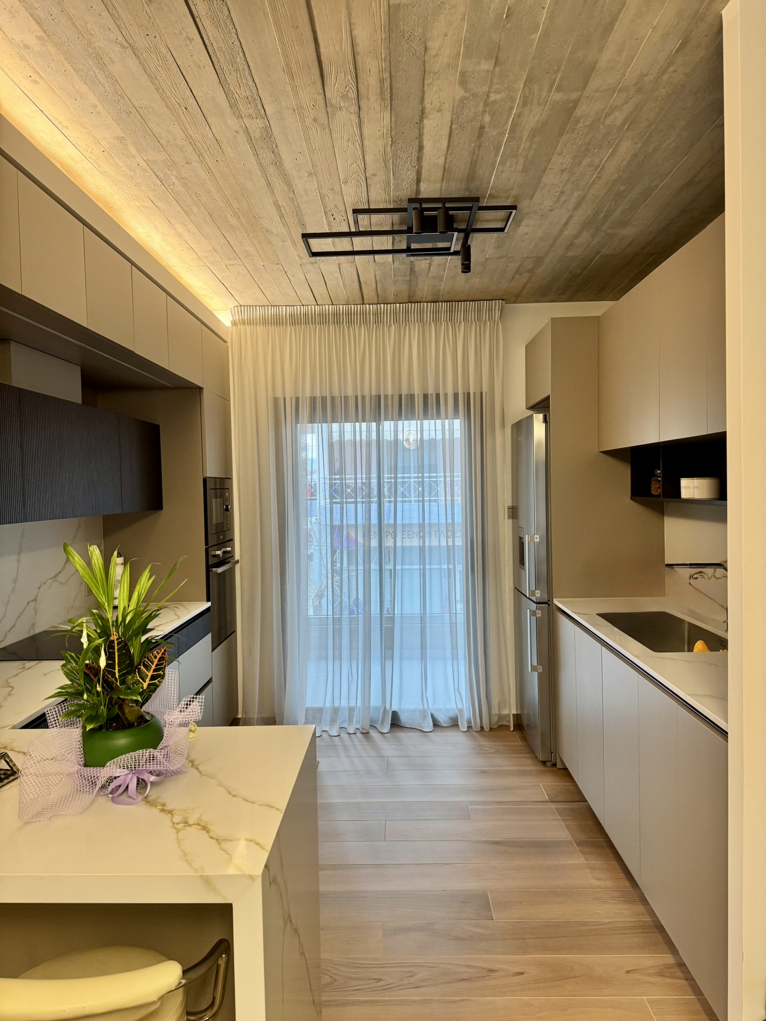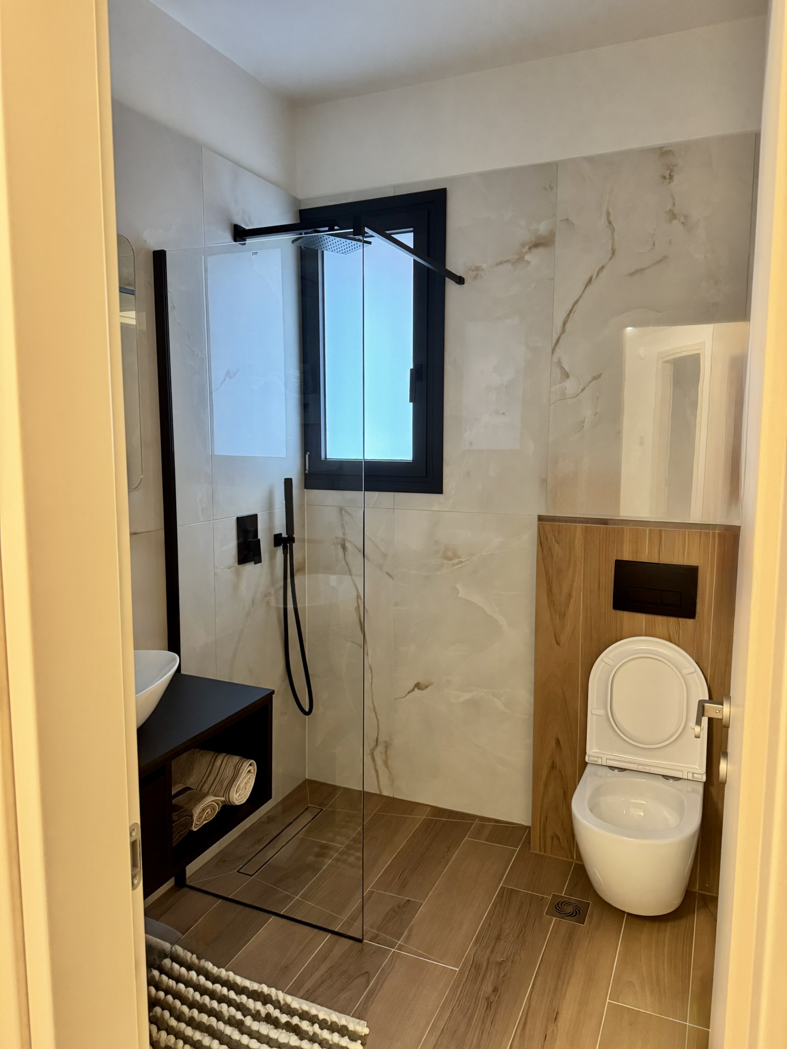 Ως προς την εσωτερική διάταξη η κατοικία αποτελείται από 3 στάθμες όπου το ισόγειο αξιοποιείται για την πρόσβαση στην κατοικία μέσω κλειστού κλιμακοστασίου καθώς και για αποθήκευση, στάθμευση αλλά και αυλισμό. Ο Α’ όροφος περιλαμβάνει τους κοινόχρηστους χώρους όπως είναι το καθιστικό, η κουζίνα και η τραπεζαρία με ένα βοηθητικό WC ενώ στον τελευταίο όροφο τοποθετούνται τρία ευρύχωρα υπνοδωμάτια με το μεγάλο λουτρό και ένα WC που εξυπηρετεί το Master Bedroom. Τέλος, η αυλή που βρίσκεται στον ακάλυπτο προσφέρεται για οικογενειακές συναθροίσεις και δραστηριότητες μετατρέποντας το ισόγειο από ζώνη διεκπεραιωτικών λειτουργιών σε έναν υπαίθριο χώρο της κατοικίας.